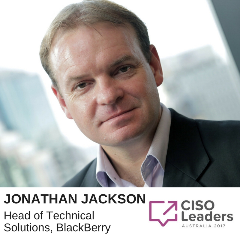 Jonathan Jackson, Head of Technical Solutions APAC and Japan for BlackBerry spoke to the 2017 CISO Leaders Summit in Melbourne about how businesses today need to embrace innovative technology such as Enterprise of Things, cloud and enterprise mobility to remain competitive. He also raised several questions such as: